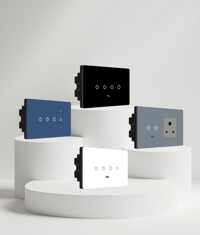 iotics offers a complete range of smart home switches built for modern Indian homes. Our smart switches are designed to replace your traditional switchboards with stylish touch panels that function as an automatic switchboard, bringing comfort, control, and automation, all in one.